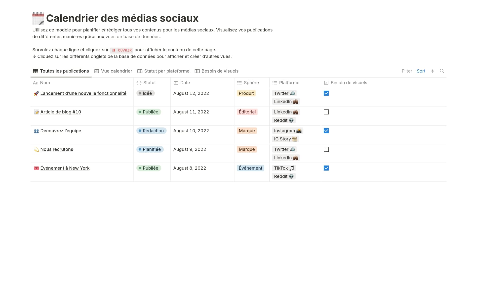 modèle calendrier de contenu