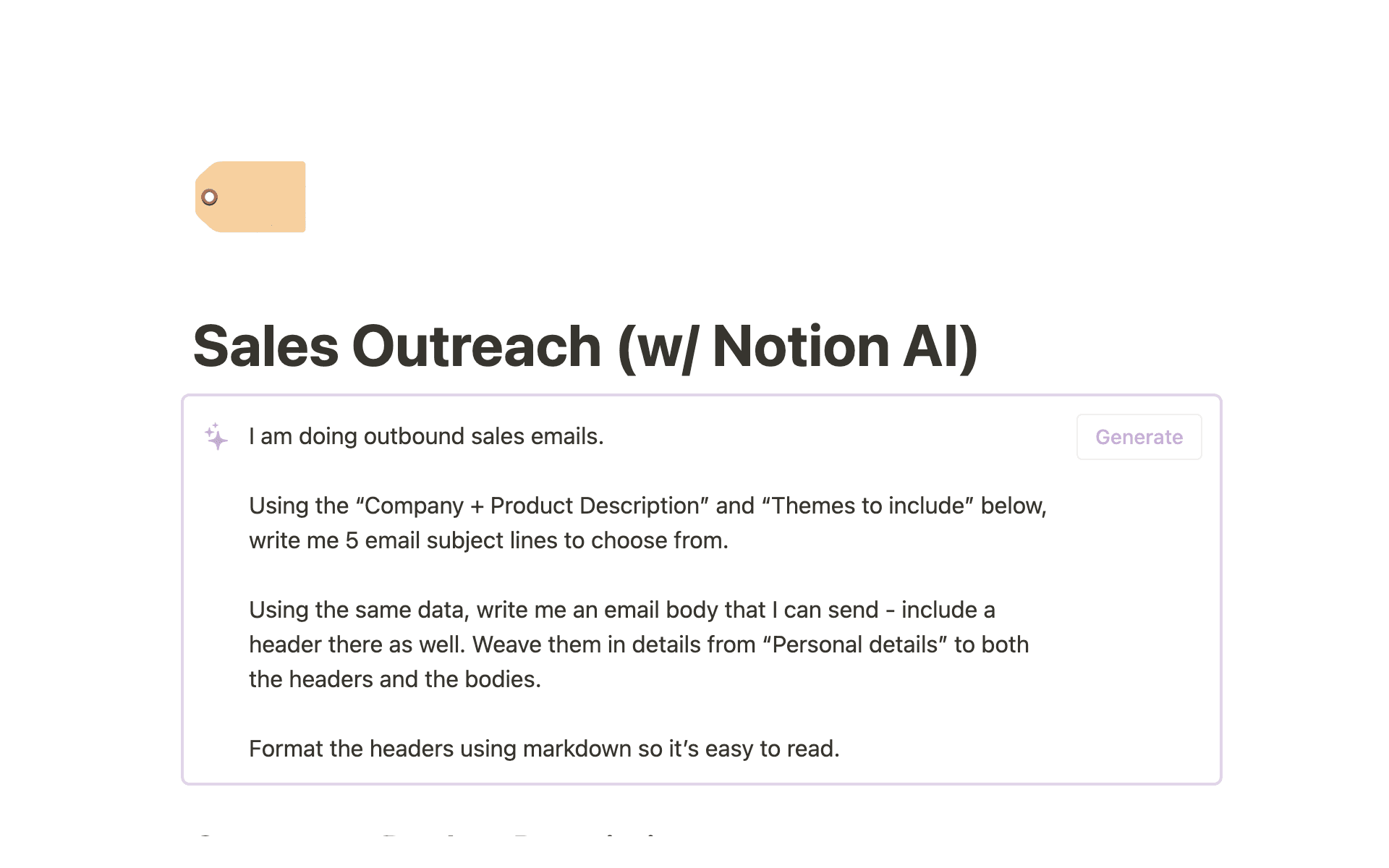 Generate personalized sales outreach emails with Notion AI
